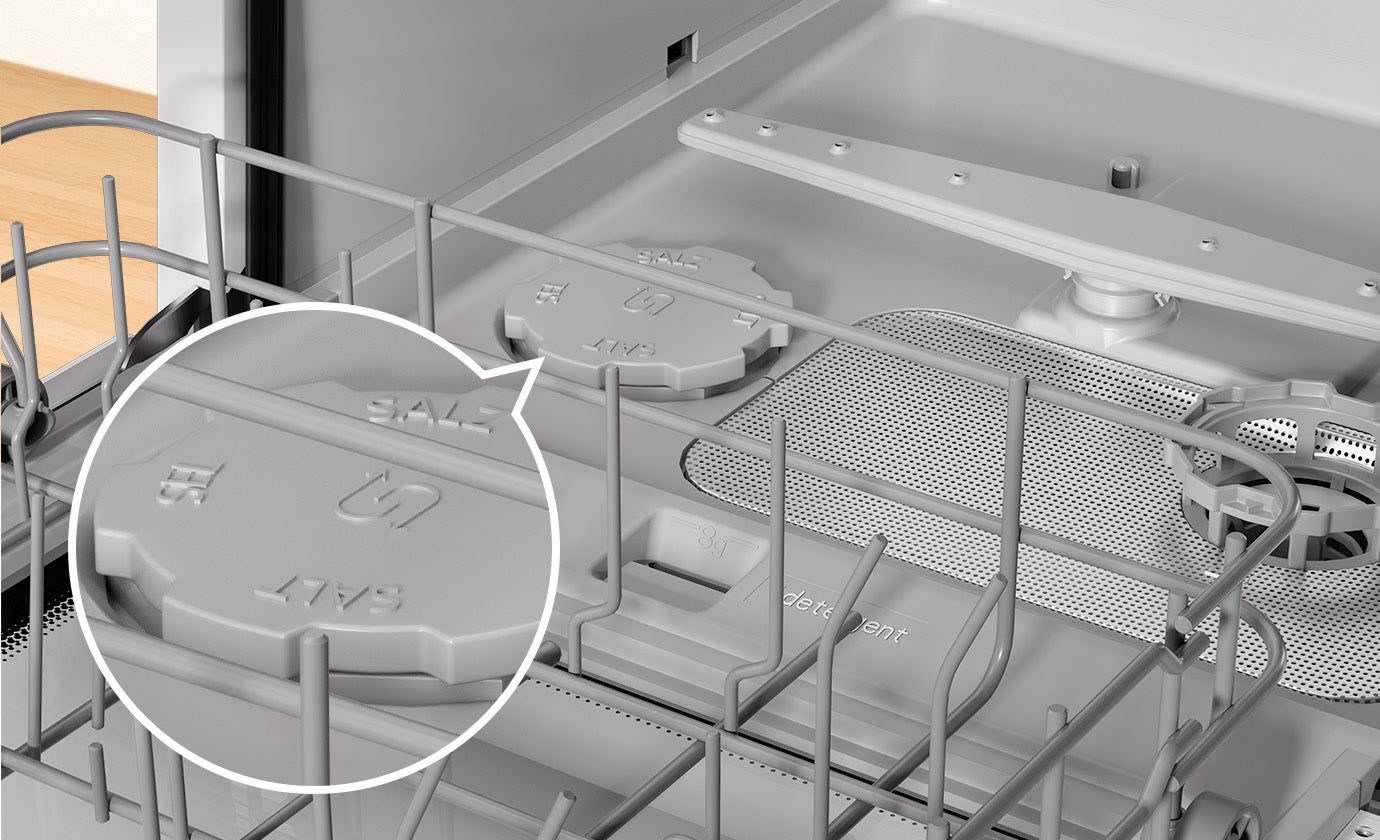 - • Add no less than 250g (0.55 lb) and no more than 500g (1.1 lb) of dishwasher salt.
