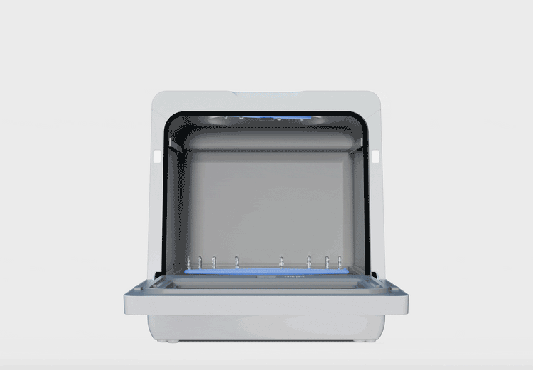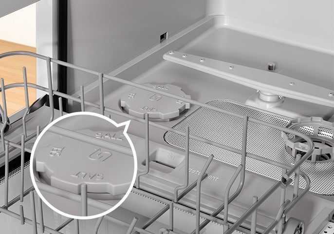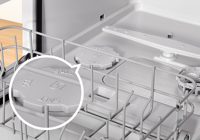 The R09 is equipped with a water softener to deal with hard water problems. It effectively prevents limescale buildup inside the machine or watermarks on your dishware, ensuring shiny surfaces after each wash.