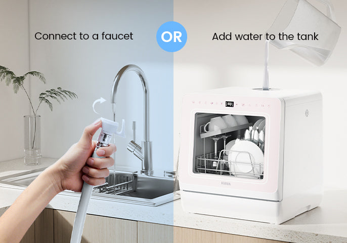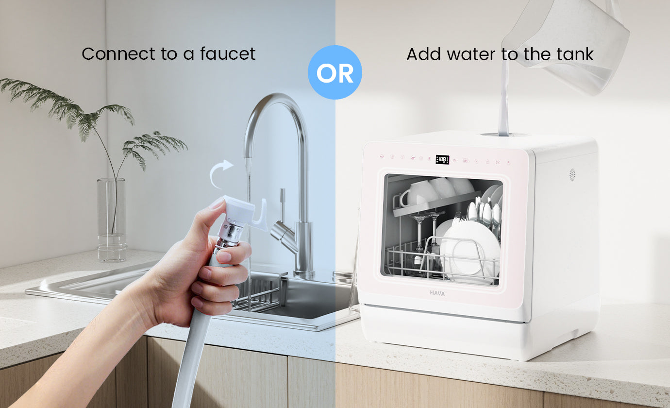 The machine features a 5 L water tank for plumbing-free installation and quick water supply. Alternatively you may also use the water inlet hose for connection to a faucet.