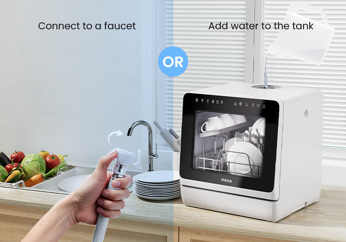 Can I add hot water directly to the tank or connect the dishwasher to a hot water supply faucet?