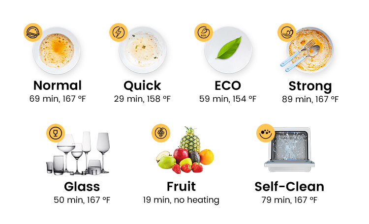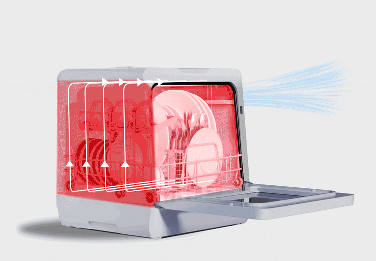 The cleaning water is heated up to 167 °F (75 °C) to sanitize your dishes and remove all the food residue with ease.