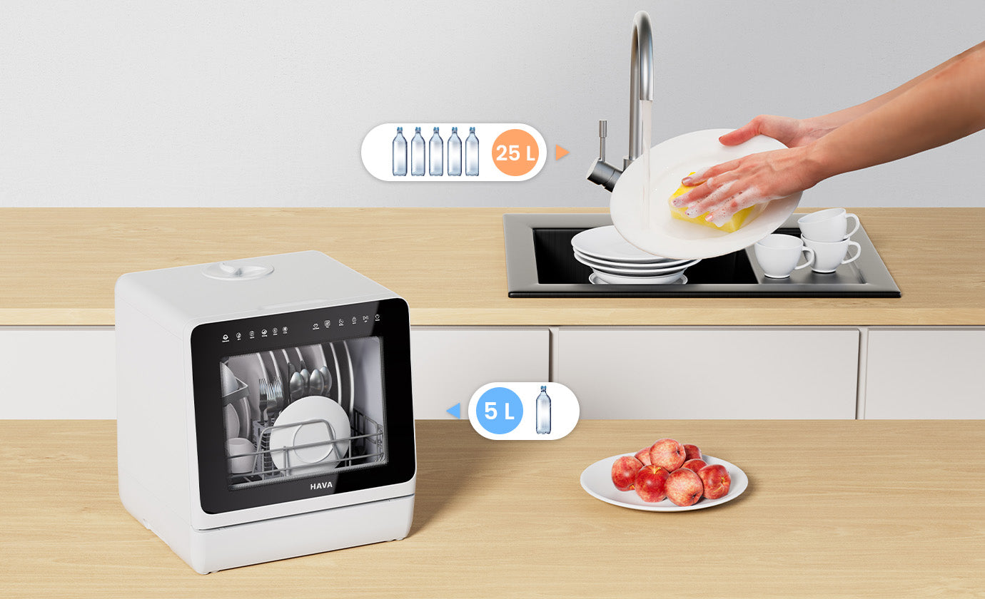 This dishwasher consumes as little as 0.35 kWh of electricity per wash cycle, and uses only 5 L of water, a saving of up to 80% compared with handwashing, perfect for a more sustainable lifestyle.