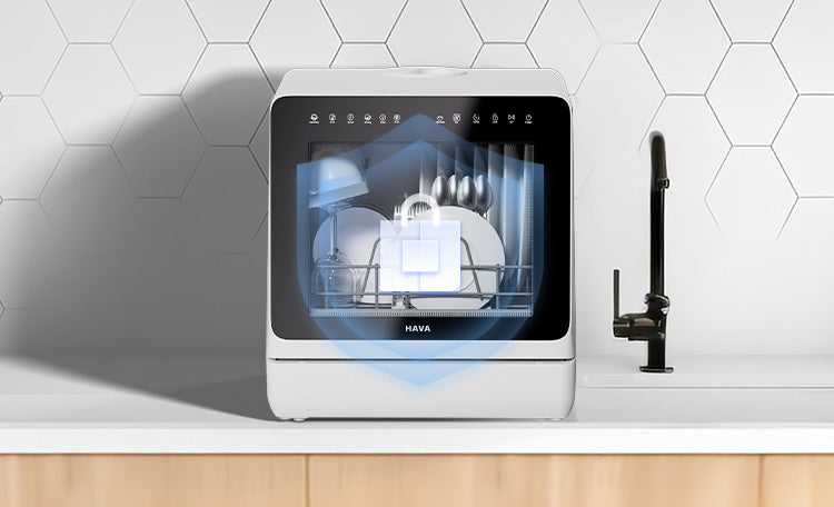 The cleaning water is heated up to 167 °F (75 °C) to sanitize your dishes and remove all the food residue with ease.
