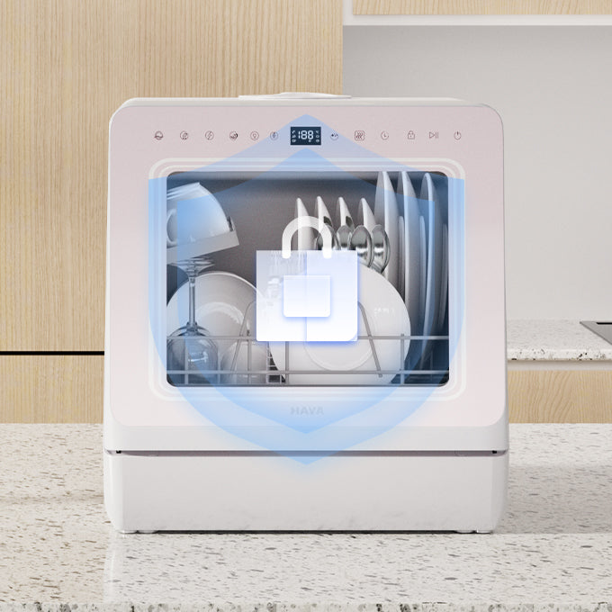 The R09 is equipped with a water softener to deal with hard water problems. It effectively prevents limescale buildup inside the machine or watermarks on your dishware, ensuring shiny surfaces after each wash.
