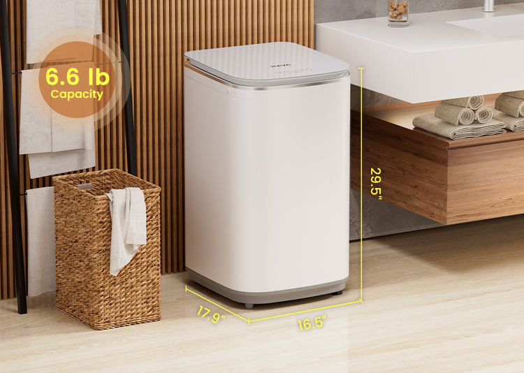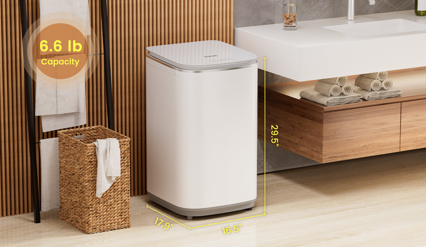 Measuring just 16.5 x 17.9 x 29.5 in, this washer fits perfectly in homes with limited spaces, while capable of handling up to 6.6 lb of laundry, making it a superior choice for everyday use.